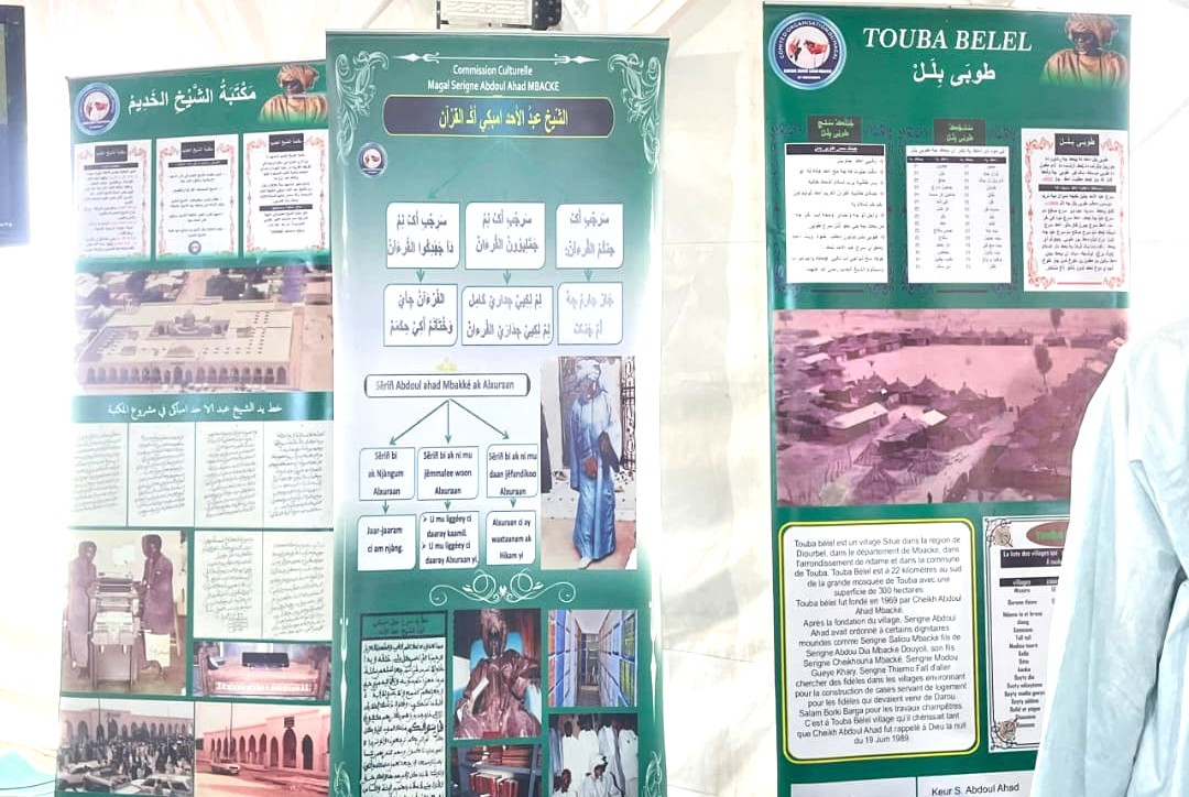 Au-delà des paroles, l’exposition revient aussi sur les réalisations matérielles du troisième Khalife des mourides. Serigne Abdou Lahad Bousso cite notamment les travaux d’extension de la Grande Mosquée de Touba, la construction de la bibliothèque Cheikhoul Khadim et l’édification de la résidence située en face de la Grande Mosquée.