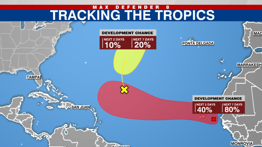 Selon le dernier bulletin du NHC, la zone a une « moyenne » chance de formation de 40 % au cours des prochaines 48 heures, et une « haute » chance de 80 % sur les sept prochains jours. Les données satellitaires récentes indiquent qu’un système de basse pression bien défini s’est formé à mi-chemin entre la côte ouest-africaine et l’archipel du Cap-Vert, avec des vents maximaux d’environ 35 mph (56 km/h).