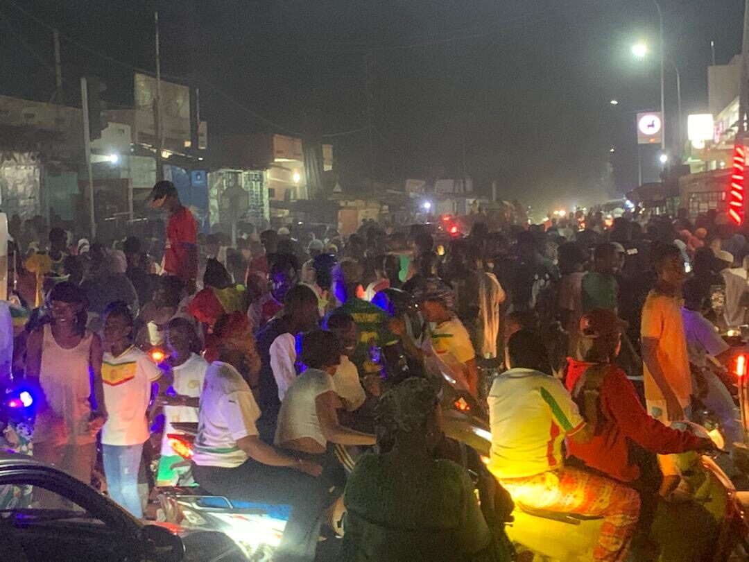 Vêtus de maillots de l’équipe nationale et d’habits aux couleurs vert-jaune-rouge, des foules compactes sont sorties de tous les quartiers de la ville. Leur point de ralliement : le rond-point de la rue Aïnina Fall, devenu l’épicentre des festivités.