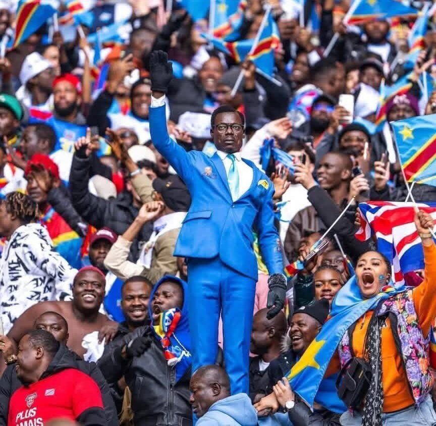 On l’appelle désormais le « Lumumba des tribunes ». Il ne chante pas, il ne danse pas, mais sa présence en dit long. C’est sa manière à lui de pousser les Léopards, et ce, avec une dignité calme, presque intimidante. Il reste 90 minutes sans ciller.