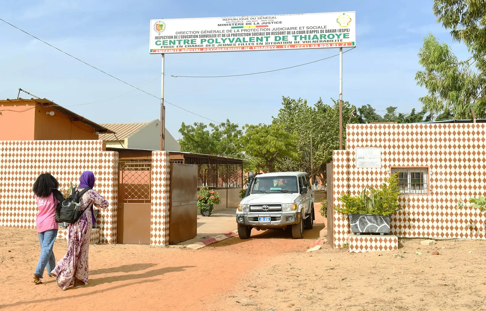 À l’intérieur de l’hôpital psychiatrique de Thiaroye, à une dizaine de mètres de l’entrée principale, sur la droite, une route sablonneuse mène au centre polyvalent. Il est 9 h 55. Un calme plat y règne. Les élèves sont en classe. Seuls trois chats traînent aux alentours de la cuisine. Deux techniciens de surface, en tenue de travail, poussent des chariots-poubelles dans une grande cour entourée d’arbres.
